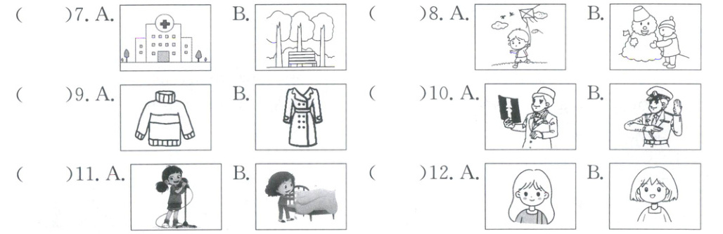 二、听句子,选出与你所听到的内容相符的图片。(6分)