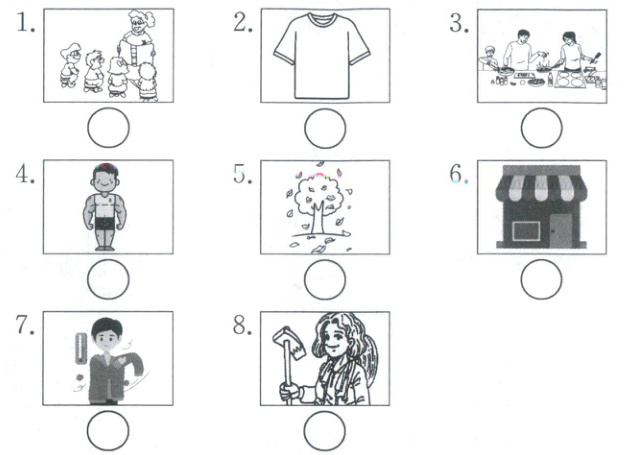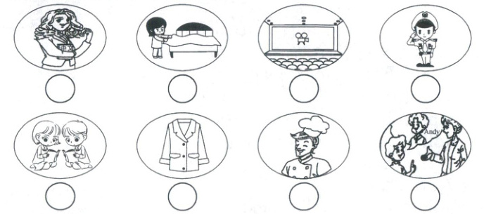 三、听录音,与图片相符的打“√”,不相符的打“×”。(8分)