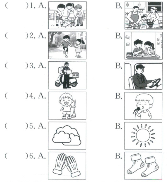 二、听对话,选择正确的图片。(6分)