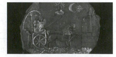 图注:小亚细亚的“大母神”乘坐波斯样式的狮子战车,驭手是希腊的胜利女神。上方是希腊的太阳神和月亮神,右边的多级高阶梯祭台则体现了伊朗地区的祭台风格。