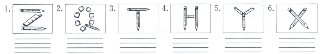 六、看一看同学们摆放的字母,请在四线格中规范写出你所看到字母的大小写。(8分,其中2分为书写分)