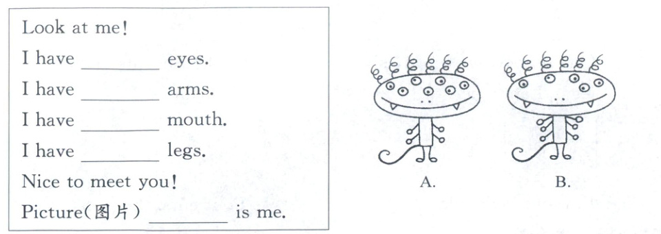 五、听录音,写出相应的阿拉伯数字并选出正确的怪兽图片。(10分)