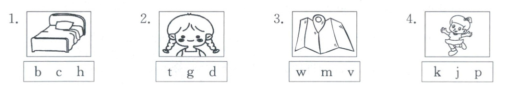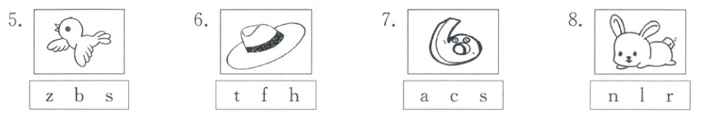 二、听录音,圈出单词的首字母。(8分)