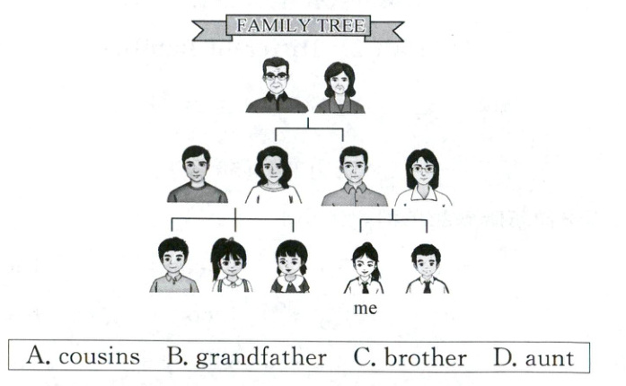 任务一:读一读,结合图片语境将单词补充完整,帮助 Xiaoyu 完成家庭情况介绍。(2分)