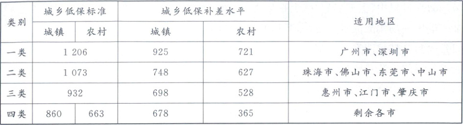 4. 读2025年广东省城乡低保最低标准表,可知广东