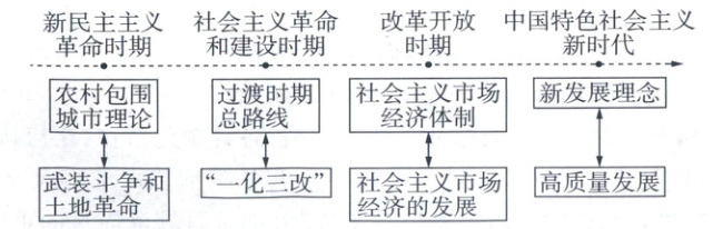 2.【2026届镇江开学考】中国共产党在百年历程中形成了独特的“理论—实践”双向互动逻辑,不断引领中国发展(见图)。材料表明中国共产党