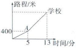 5. 小高从家骑自行车去学校上学,先骑上坡路到达点$A$,再骑平路到达学校,所用的时间与路程的关系如下图所示。