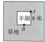 5.(2025·天台)一个边长是8米的正方形羊圈,外面是草地(如图)。拴羊的绳长5米。(10分)