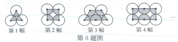 6. (2025·瑞安)用半径为1厘米的圆组合图形,第4幅图的阴影面积是( )平方厘米。根据前4幅图的规律,第n幅图的阴影面积是( )平方厘米。