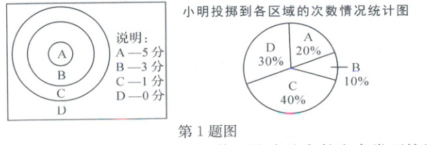 1. (2025·宁波江北)飞镖游戏中将飞镖投掷到靶子不同区域的得分情况如下图。小明投掷到不同区域的次数情况制成下面的统计图。其中小明投中A区域共得分10分,那么小明一共投掷了( )次,一共得了( )分。
