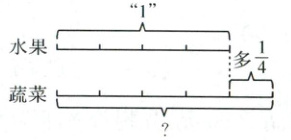 (1)蔬菜的质量比水果多$\frac{1}{4} (2)196 × (1 + \frac{1}{4})=245($千克) 答:实验小学每天购进蔬菜245千克。