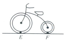6. (2025·玉环)自行车的前轮半径为 30 厘米,后轮半径为 20 厘米。如下图,当前轮向前行驶了 5 圈到 E 点的位置时,后轮 F 点的位置是下图中的( )。