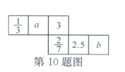 10. 如图是一个正方体的展开图,这个正方体相对两个面上的数互为倒数,那么$a$,$b$两数的乘积是($$
