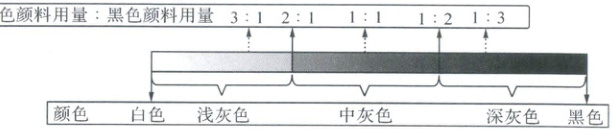 21. 用白色和黑色两种颜色混合调出灰色,调出效果的色卡如下: