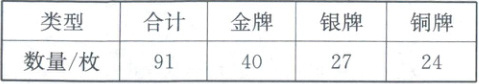 20. 中国运动员在巴黎举行的第33届奥林匹克运动会上获得奖牌数量如下表: