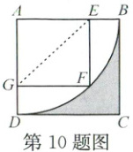10. 如图,已知$EG = 10cm$,正方形$AEFG$的面积是正方形$ABCD$的( )(填分数),阴影部分的面积是( )$cm^2$。