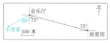 (1)以音乐厅为观测点,展览馆位于( )偏( )( )°方向上。(2 分)以展览馆为观测点,音乐厅位于( )偏( )( )°方向上。(2 分)