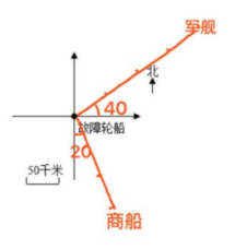 (2)如果商船以每小时 30 km 的速度赶往事点,军舰想与商船同时赶到,每小时需要航行多少千米?