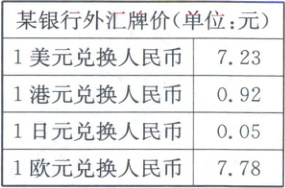 5. (2024·台州椒江)同一块电子手表在美国标价 11 美元,香港标价 100 港元,日本标价 1189 日元,欧洲标价 10 欧元,(