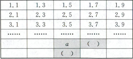5. 下面是一张按一定规律排列的数表。假设阴影部分其中一个数是$a$,阴影部分三个数的和是$32.7$,则$a$是多少? (5 分)