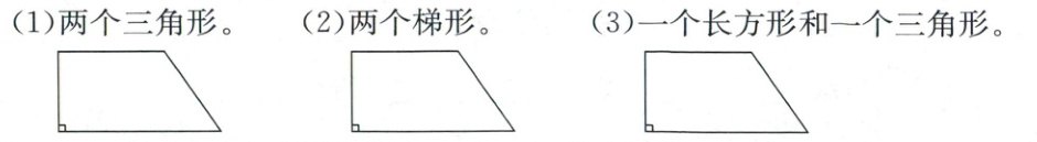 2. (2024·台州黄岩)按要求在下面的梯形中画一条线段,把梯形分成两个图形。(9 分)
