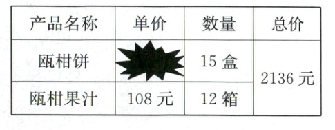 5.(2025·温州龙湾)高阿姨在瓯柑集市购买产品时,不小心把购货发票弄脏了,每盒瓯柑饼多少元?(4分)