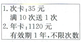 3. (2025·天台)如图是某游泳馆的收费标准。徐老师2024年买了一张年卡,支付了1120元。实际上由于工作繁忙只去了24次,年卡就到期了。徐老师买的这张年卡划算吗?(10分)