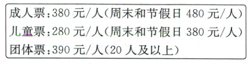 3. 国庆节放假期间,一个旅游团共有 40 人,有 30 位成人,10 位儿童。他们要购买景点门票,门票价格如下。