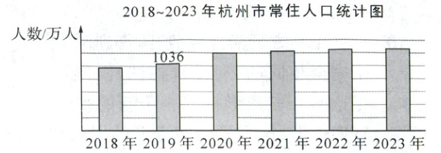 (2)示例:2018~2023年杭州市常住人口逐年增加;杭州市常住人口在2019年超过1000万人。
