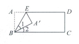 3. 如图,把一张长方形纸沿 BE 折叠,如果$\angle2 = 28^{\circ}$,那么$\angle1=$()。