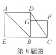8. 如图是由边长为 9 厘米和 6 厘米的两个正方形组成的,梯形 ABCD 的高是()厘米。