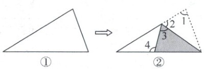 7. (2024·德清)如右图所示,将图形①折叠后得到图形②,已知∠1=77°,∠2=68°,那么∠3=( )°,∠4=( )°。(4分)