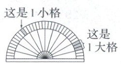 5. (2024·杭州拱墅)学习角的度量后,小明自制了一个特殊量角器(如右图),这个量角器上1大格的度数是()度,1小格是()度。