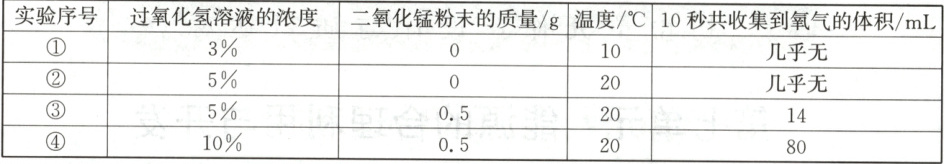 化学反应速率与多种因素有关,为探究影响过氧化氢分解速率的因素,小组同学分别取足量且等质量的过氧化氢溶液完成了下列实验。