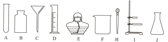 (1) A. 试管 B. 集气瓶 C. 漏斗 D. I. 铁架台 J. 锥形瓶