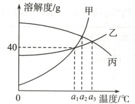 D.将$a_2^{\circ}C$甲、乙、丙三种物质的饱和溶液分别降温至$a_1^{\circ}C$,所得溶液的溶质质量分数由大到小的顺序是甲=乙<丙