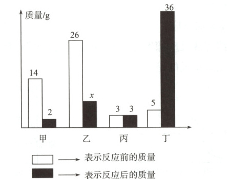 7. 甲、乙、丙、丁四种物质在反应前后的质量关系如图所示。下列有关说法错误的是( )