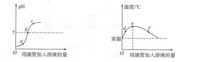 11. 用稀硫酸与氢氧化钠溶液反应探究中和反应实验时,测得溶液 pH 的变化和溶液温度的变化如图所示。下列说法正确的是( )