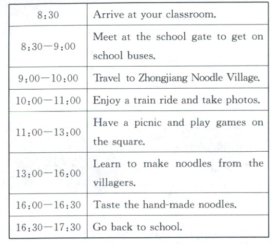 Get ready for a wonderful school trip! We will visit Zhongjiang Noodle Village this Saturday. It's going to be a day full of joy!
