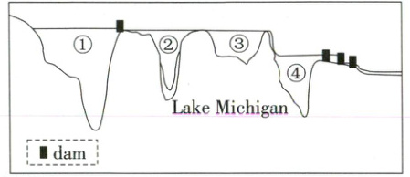 1.D 解析:细节理解题。根据“This lake has the smallest surface area at 7,336 square miles. Three dams control the flow of water downstream and include locks so boats can enter from the Atlantic.”可知,这个湖的表面积最小,三座水坝控制着下游的水流,并设有水闸,使船只可以从大西洋进入,故对应数字④。