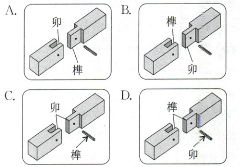 1. 汇报中需要配图讲解,根据材料一,下列示意图中榫和卯位置标注正确的一项是( )