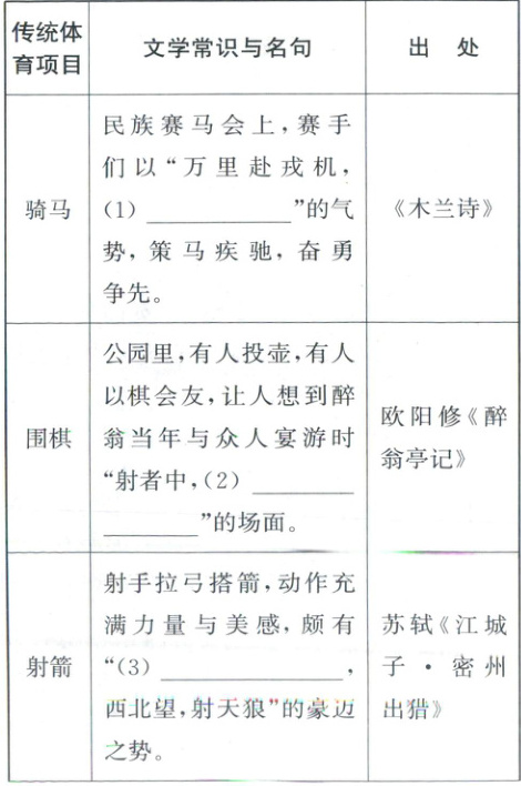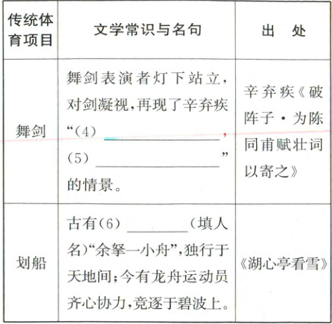 24. (2025·广西)传统体育焕生机,跨越千年显魅力。请在下表中按要求填写相关内容。