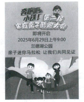 1. (2025·大庆)“奔跑吧,小铁!”2025 年 6 月 29 日上午 9 点,大庆市“第二届家庭亲子酷跑大会”将在萨尔图区兰德湖公园激情开跑,现全城招募最酷家庭战队。小庆跃跃欲试,想要和家人一同参与此项盛会。请你帮他拟定家庭战队的名称及口号。要求:口号与名称应在内容上有关联。名称不超过 6 个字,口号不超过 30 个字(标点符号占字数)。