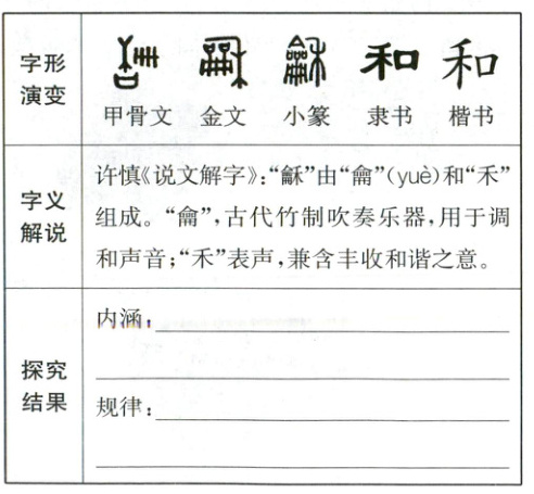 (1)[活动一:溯源探流]根据字形演变和字义解说,探究“和”的内涵及其字形演变规律。