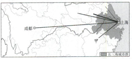 [2022·浙江 6 月卷]下图为 2017 年长三角城市群流入人口的主要来源分布图,图中线条宽度与流入人口占比相关,线条越宽占比越高。读图,完成 11、12 题。