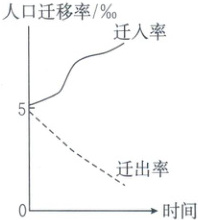 [曲靖一中期中]人口迁移率是指一定时期,某地区人口迁入、迁出的绝对量与该时期该地区总人口数之比。下图是我国某省(市、自治区)近年来人口迁移率随时间变化示意图。读图,完成 4~6 题。