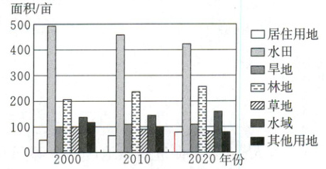 1.A 【解析】读图可知,该乡村土地利用形式主要为水田,属于耕地,A正确。