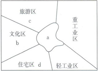 [文昌中学期末]读某大城市功能分区分布简图(下图),完成1、2题。