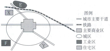 5.A【解析】从图示来看,E地位于铁路与城市主要干道交会处,交通更加便利,A项正确;工业区或多或少都会对城市造成一定的污染,B项错误;E地交通更便利,地价肯定比F地高,C项错误;两地都在同一个城市,工人素质差别小,D项错误。