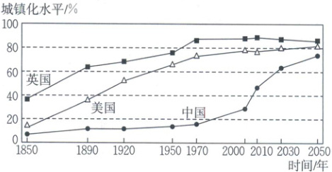 [邯郸一中月考]下图为中国、英国和美国三个国家城镇化进程示意图(含预测)。读图,完成5、6题。